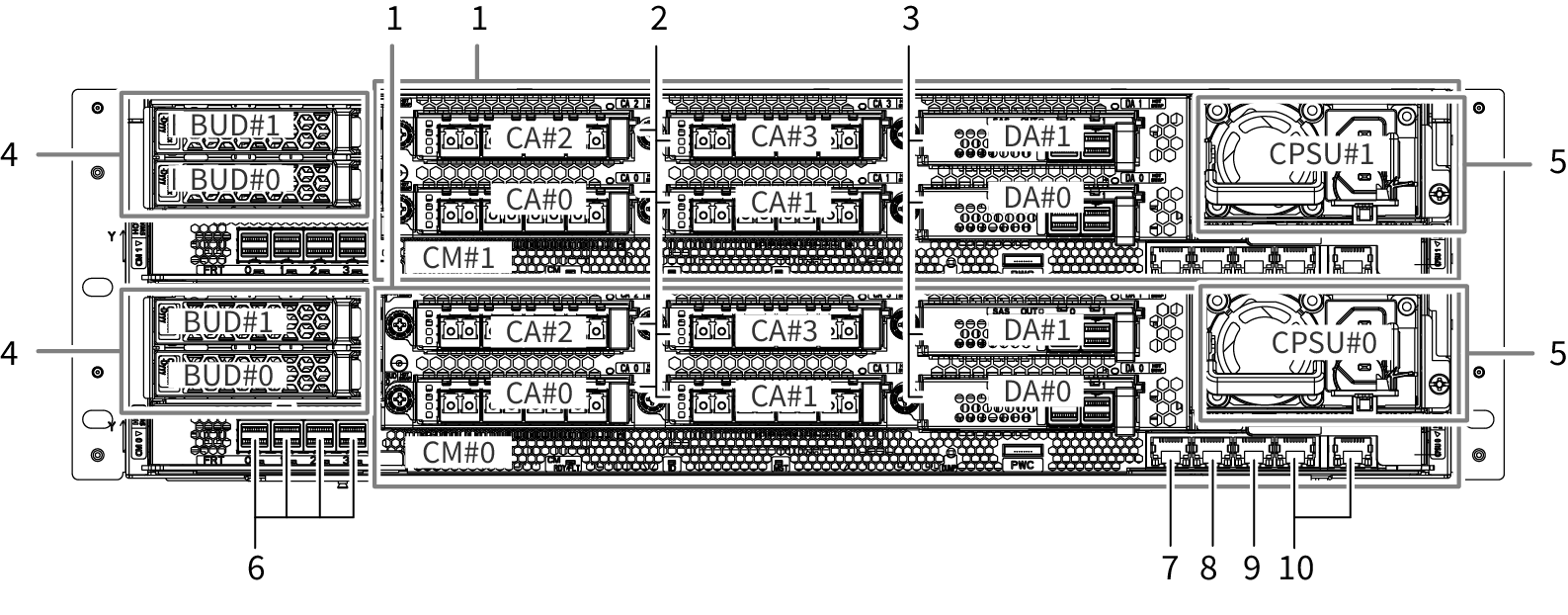図: コントローラーエンクロージャ背面(ETERNUS DX900 S6, ETERNUS DX8900 S6)