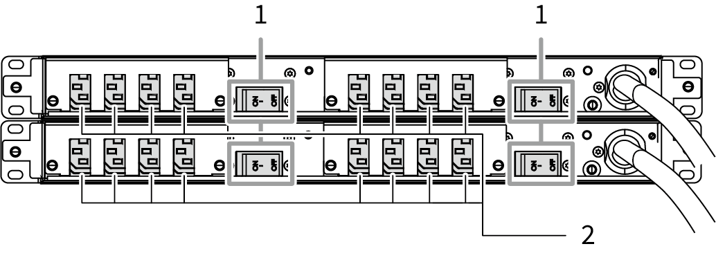 図: ACコンセントボックス(AC16A/200V用、2U、出力コンセント × 16)