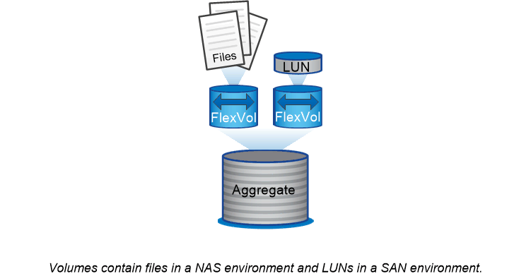 ONTAP serves data to clients and hosts from logical containers called FlexVol volumes. Because these volumes are only loosely coupled with their containing aggregate, they offer greater flexibility in managing data than traditional volumes.